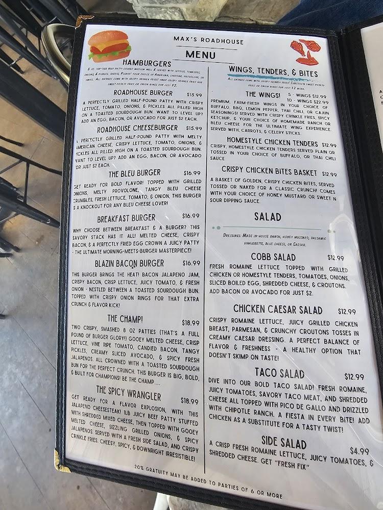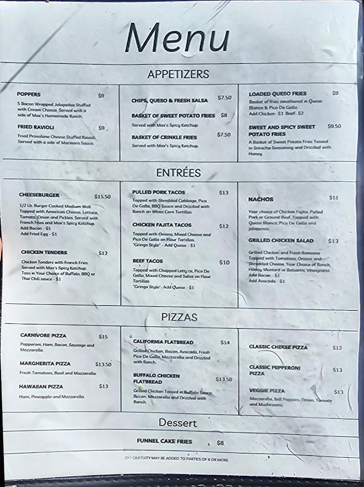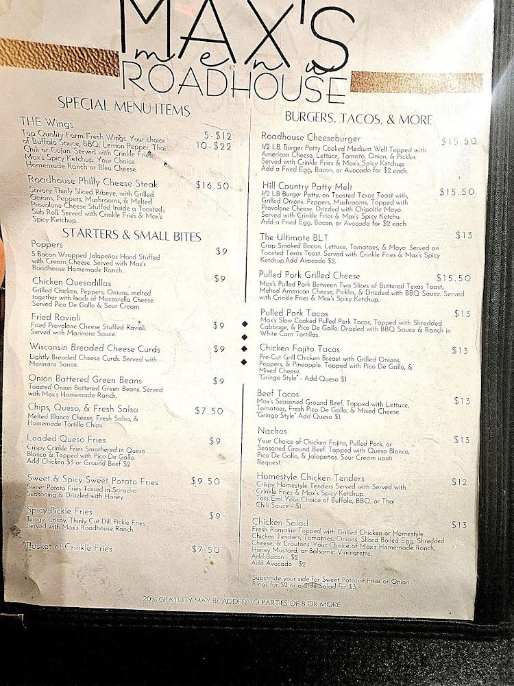 Max's Roadhouse features a menu filled with American classics. Guests can expect everything from burgers to sandwiches, and delicious appetizers like fried green beans and nachos.